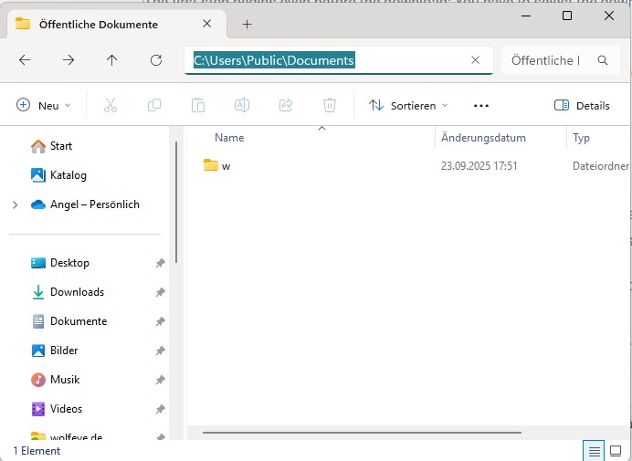 E por esse motivo, é melhor escolher uma pasta em C:\Usuários\Público\Documentos ou C:\Usuários\Público\Documentos\w e criar a pasta chamada w:
