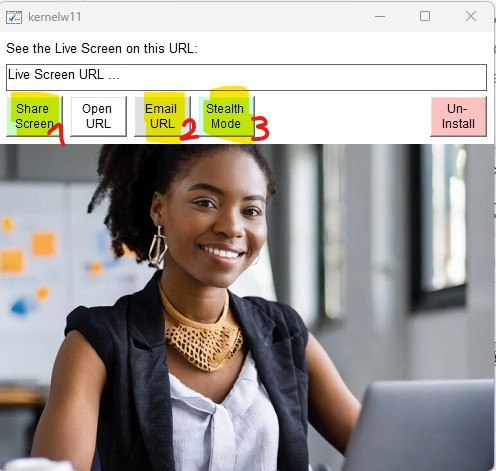 - O botão “Email URL” (esse botão enviará para sua caixa de entrada de e-mail o link da URL da tela ao vivo, onde você verá a tela do computador ao vivo).